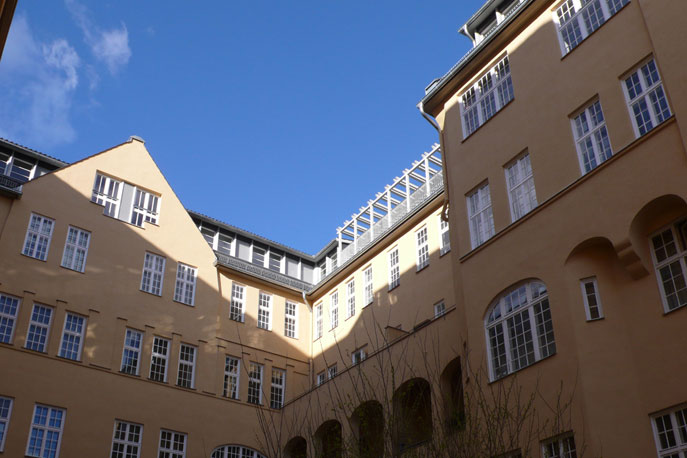 Der denkmalgeschützte Gebäudekomplex von 1907/08 stammt vom Architekten Albert Gessner. Auf über 2000 qm Grundfläche entstanden hier im Dachausbau elf große neue Wohnungen, zum Teil mit Galerien oder als Maisonettewohnungen und mit großzügigen Dachterrassen. Die mit dem Denkmalamt abgestimmte Gestaltung nimmt Motive Gessners auf und übersetzt sie in moderne Formensprache. Eine denkmalgerechte Instandsetzung der Fassaden und Treppenhäuser, Erneuerung der Aufzüge, haustechnische Strangsanierung und Wärmedämmmaßnahmen ergänzten die Baumaßnahmen.