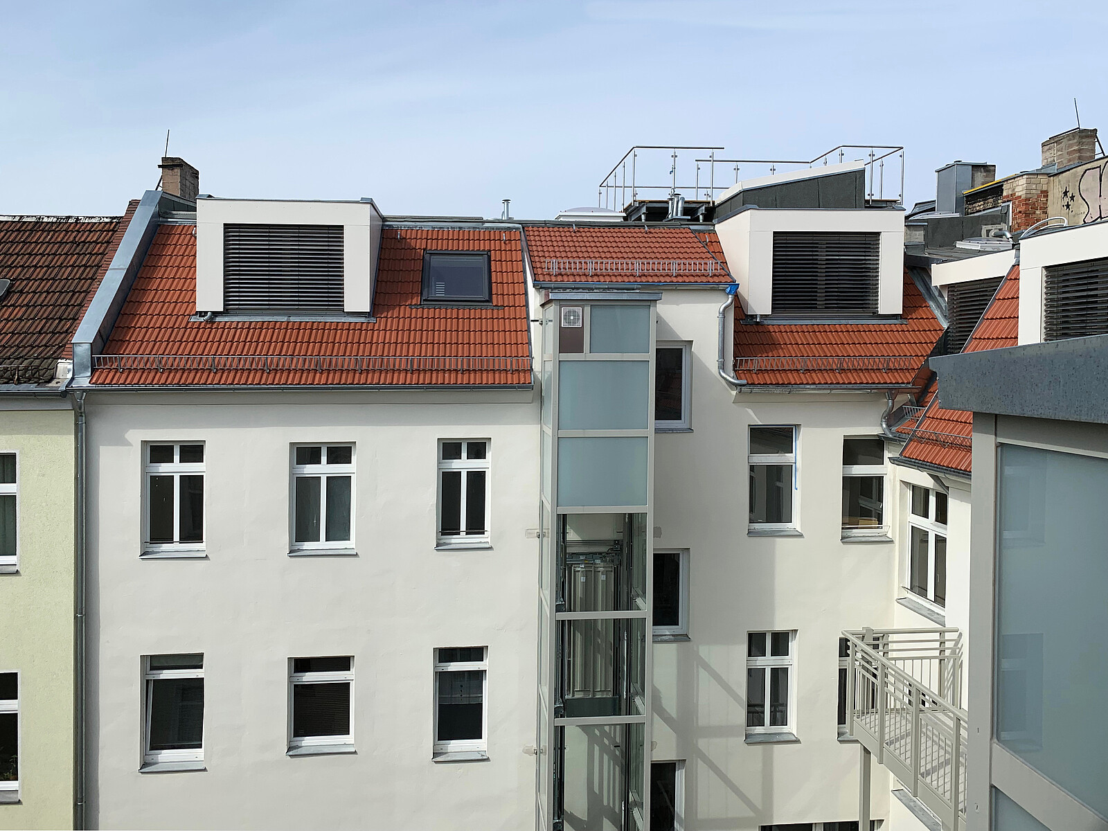 Beide Wohnungen verfügen im Vorderhaus und Gartenhaus über Aufdachterrassen.