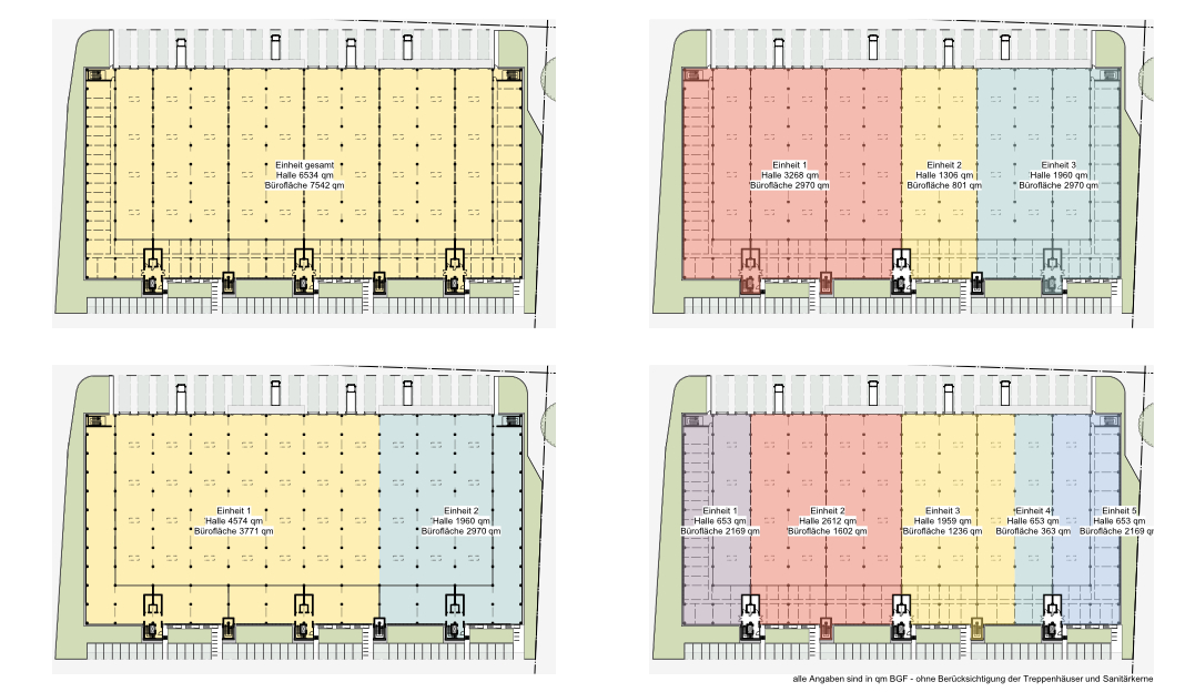 Ziel der Untersuchung war die maximale Ausnutzung des Grundstücks mit einer Neubebauung als Lager- und Logistikhalle mit größtmöglichem Büroflächenanteil. Die Halle sollte flexibel teilbar und vermietbar sein.
