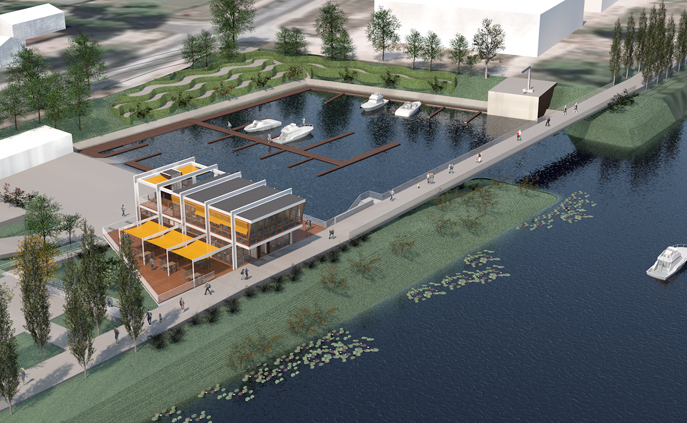 Neubau eines Hafengebäudes mit Hafenmeisterei und Restaurant