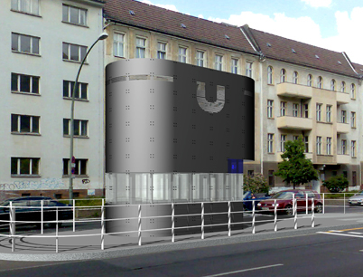 Die Prägnanz und Symbolhaftigkeit der Aufzugseinhausung in Form des U-Boot-Turms stellt sicher, dass die Aussage nicht verfälscht oder ins Gegenteil gewendet werden kann. Es sind die klare und eindeutige Form des Bauwerks und der einfache Sinnzusammenhang, die eine Verkehrung der Entwurfsaussage ausschließen. Der BVG und den Entwurfsverfassern ist die Vandalismus-Problematik durchaus bekannt. Deshalb wurde für die nicht-transparenten Flächen ein Material gewählt, das sich aus den Erfahrungen der letzten Jahre besonders gut eignet, von Graffiti gereinigt zu werden: Es handelt sich dabei um emaillierte Stahlplatten.Die Glasflächen werden wie üblich mit einer Folie versehen, die Scratching-Versuchen vorbeugen soll.