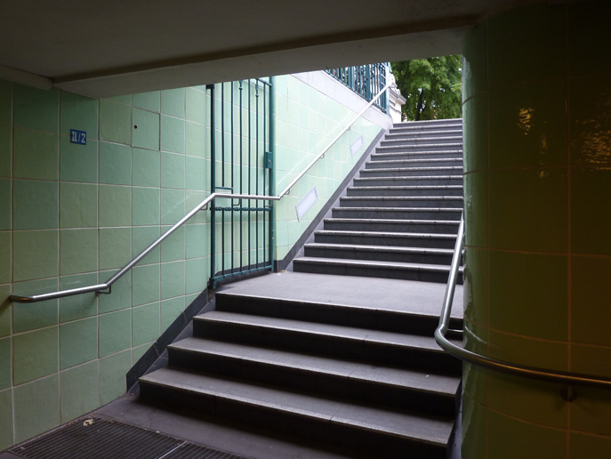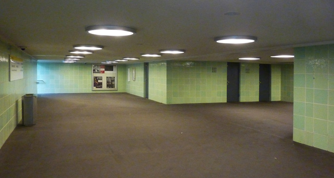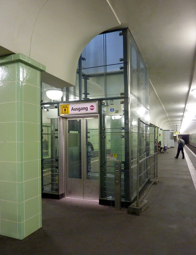 Die historischen Fliesen in der Bahnsteigebene wurden mit originalgetreuen Nachbrand-Fliesen ergänzt. Die Treppenanlagen und historischen Grenander-Portale wurden erneuert.