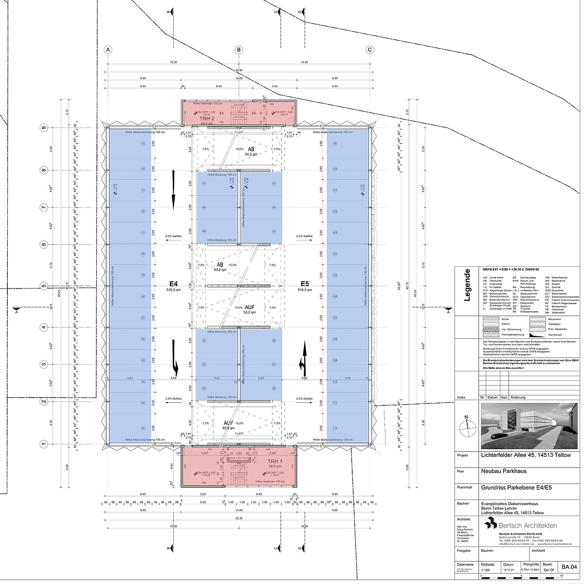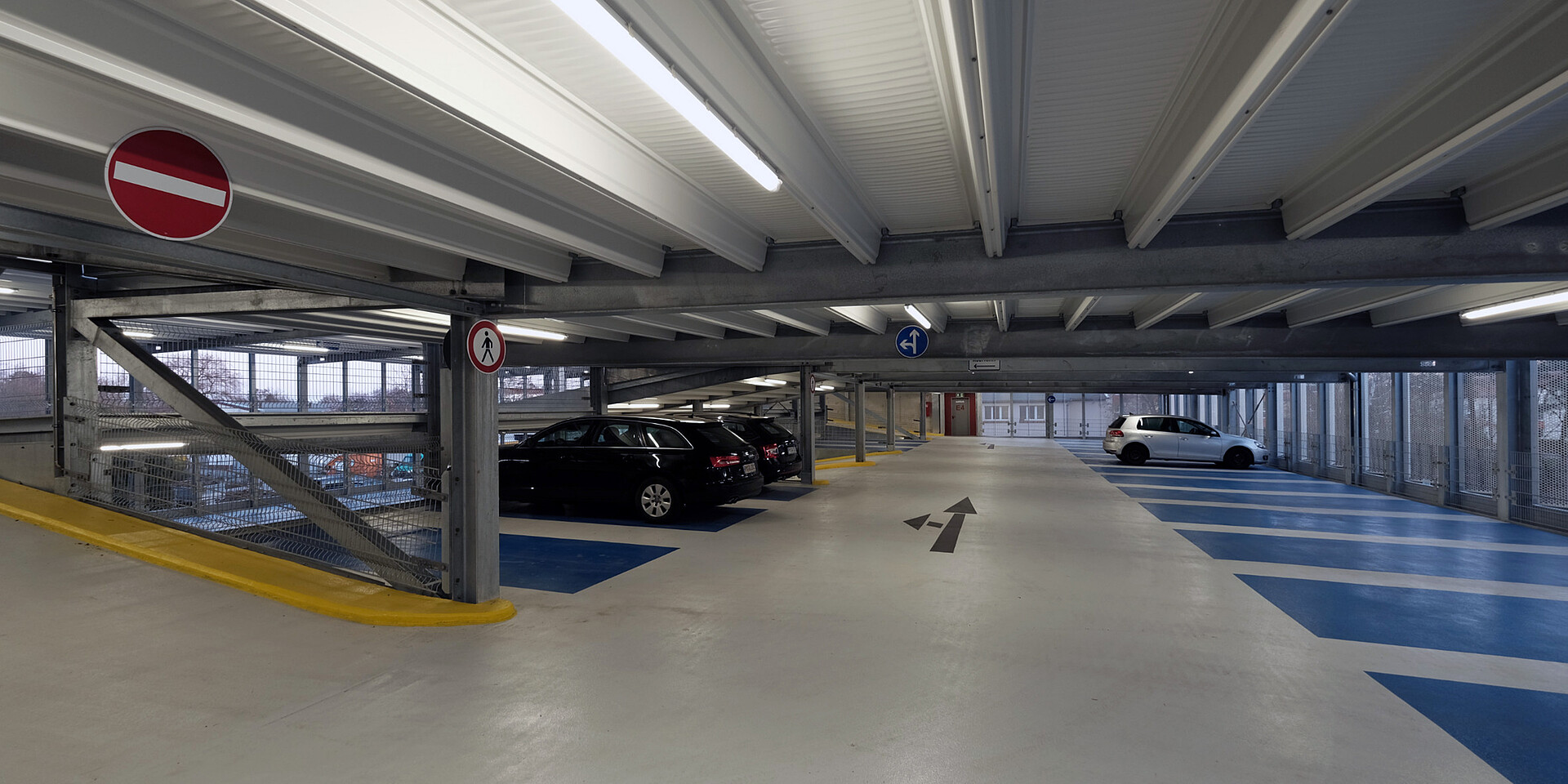 Auf dem Gelände des Diakonissenhauses in Teltow wurde ein Parkhaus mit 152 PKW-Stellplätzen realisiert.
