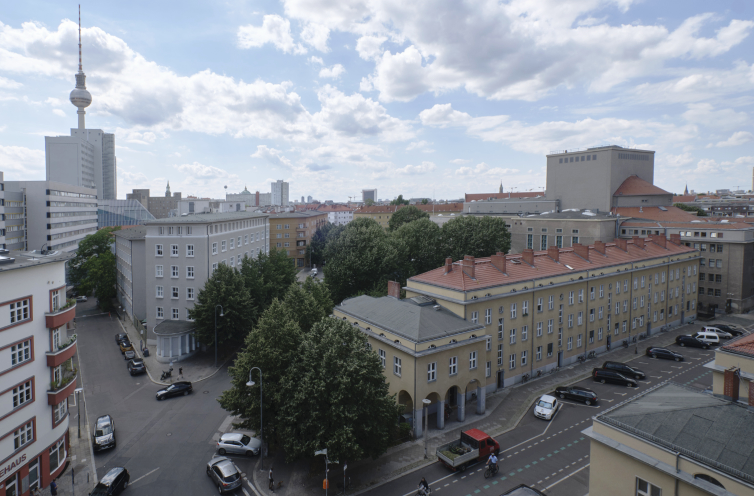 Ursprünglich beabsichtigte der heutige Eigentümer den Dachausbau auf 18 gleichartigen Mehrfamilienhäusern östlich und westlich der Volksbühne. Aufgrund massiver Widerstände des Denkmalschutzes wurde schließlich zunächst nur die denkmalgerechte Sanierung der letzten sechs noch unsanierten Häuser umgesetzt.