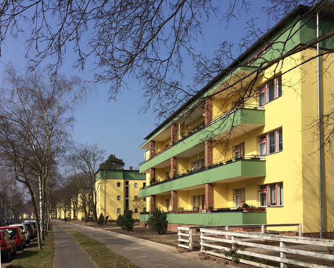 In diesem Teil der Waldsiedlung Zehlendorf wurde 2015 eine Grundsanierung der Fassaden durchgeführt.