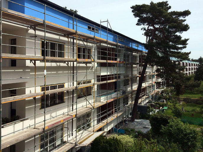 - denkmalgerechte Instandsetzung von Fassaden, Loggien, Fenstern
